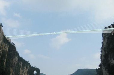 這座玻璃橋位于張家界大峽谷景區(qū),是世界最高、跨度最長(zhǎng)的玻璃橋,大橋建在大峽谷兩側(cè)的峰頂上,橫跨大峽谷,橋拱距谷底相對(duì)高度約400米,全長(zhǎng)約370米,橋面全部采用透明玻璃鋪設(shè),橋中心有全球最高的蹦極。站在橋上,腳下400米處的谷底全景盡收眼底。玻璃主橋建成后將申報(bào)吉尼斯世界紀(jì)錄。