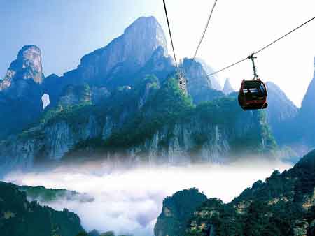 | 下午 | 午餐后游覽“擴(kuò)大的盆景,縮小的仙境”有峰林之王稱號(hào)的---天子山景區(qū) (仙女散花、御筆峰、天子閣、云青巖等景點(diǎn)),賀龍公園,十大元帥之一的——賀龍銅像,下山游玩十里畫廊景區(qū)(三姐妹峰、采藥老人、全家福、食指峰、駝駱峰等),乘坐旅游巴士大約50分鐘的車程返回市區(qū),車游“千年古戰(zhàn)場(chǎng)”百丈峽出景區(qū):峽谷因有高近百丈的石壁直插云霄,不敢仰視,故而得名。返回張家界市,天氣晴朗還可車觀“武陵之魂”巍峨天門山、天門洞。 |